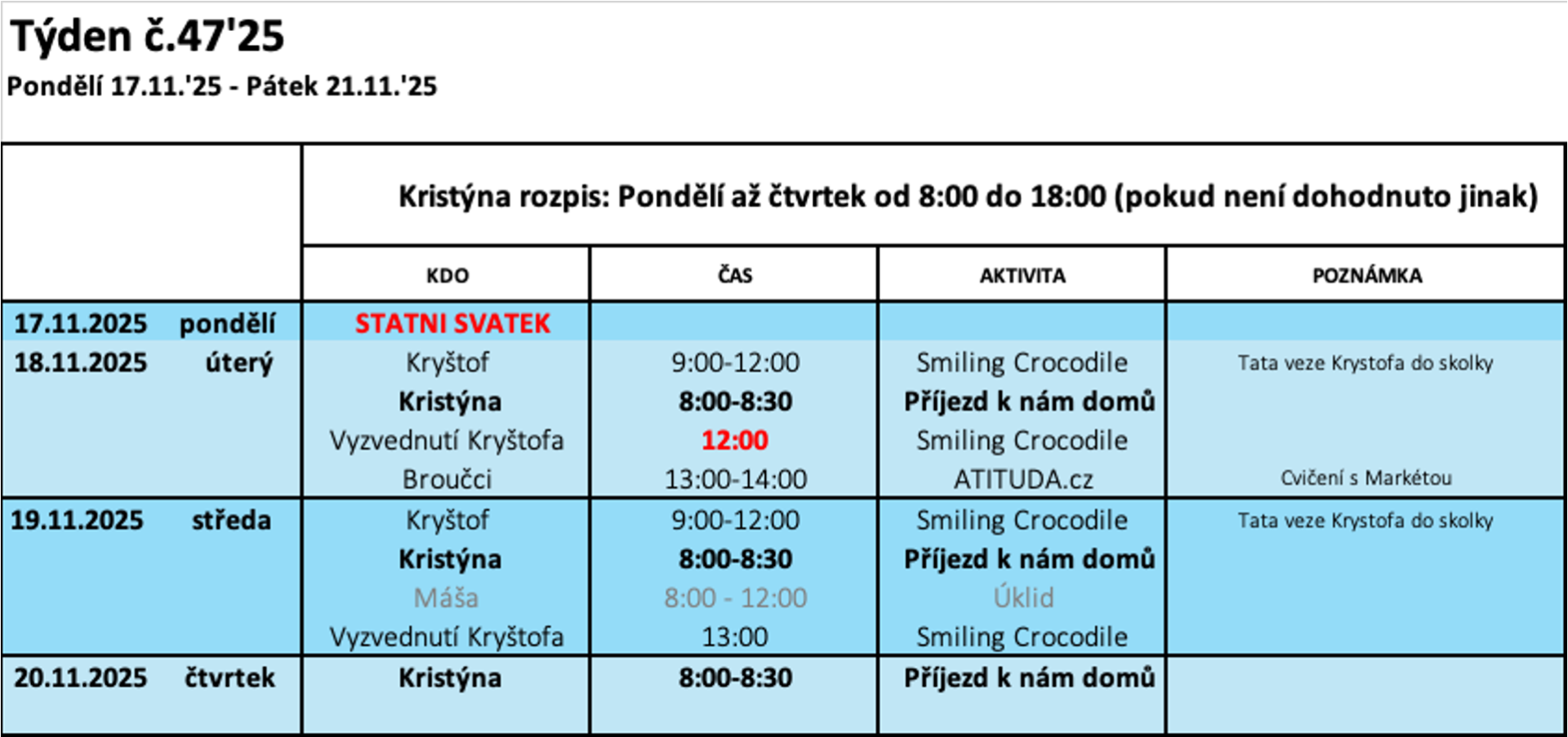 Rozpis na tento týden